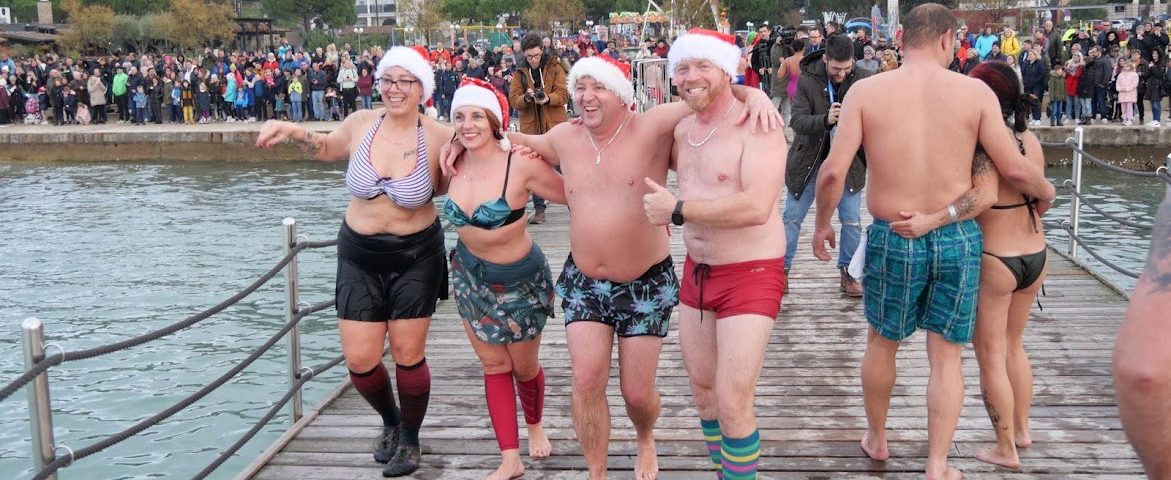 18. NOVOLETNI SKOK V MORJE je bil spet končno tisti pravi, brez omejitev, z veliko nasmejanimi obrazi in večtisočglavo množico, ki pač ni bila tako pogumna kot tistih 400+ kolikor jih je skočilo v morje.